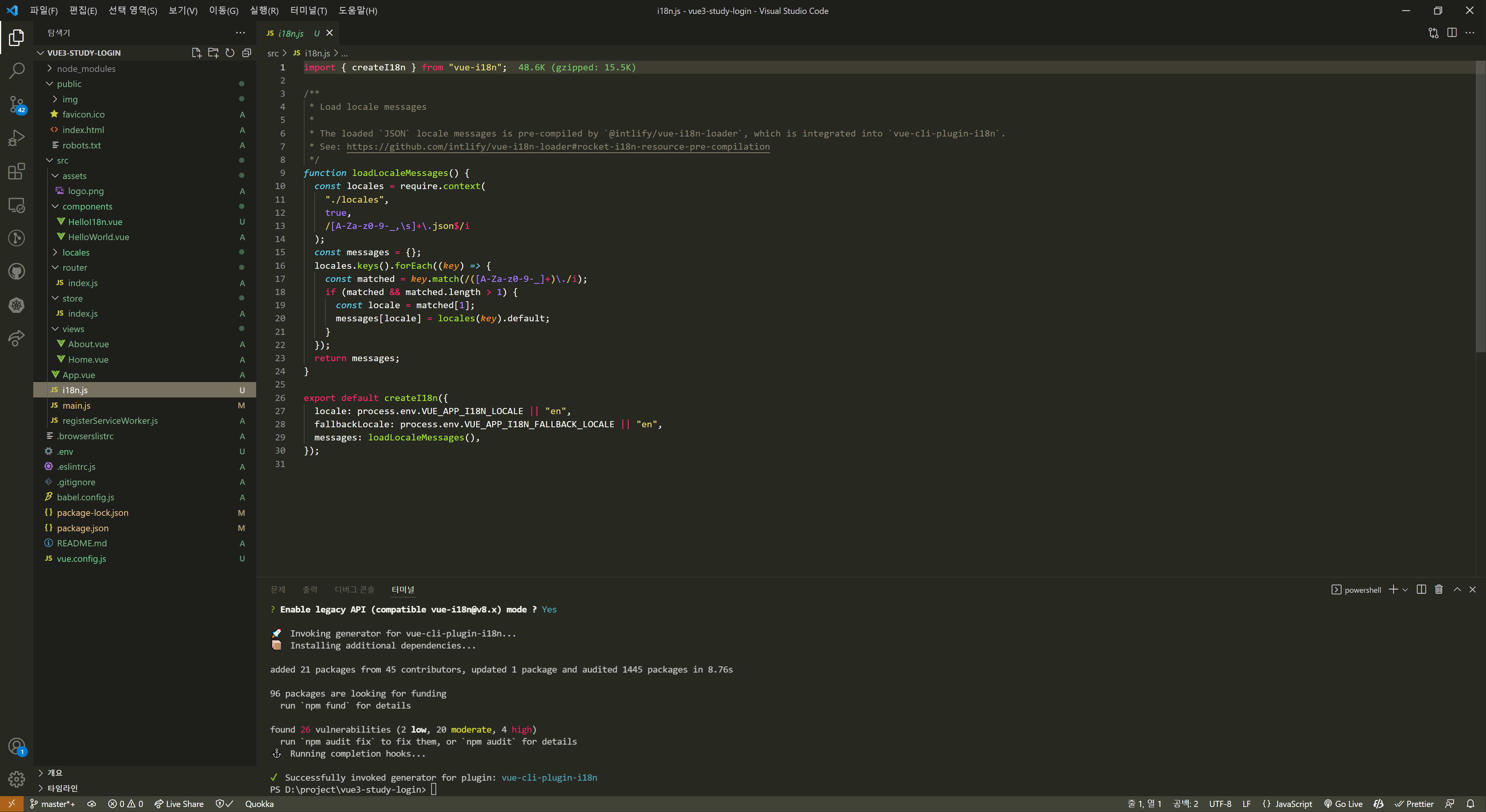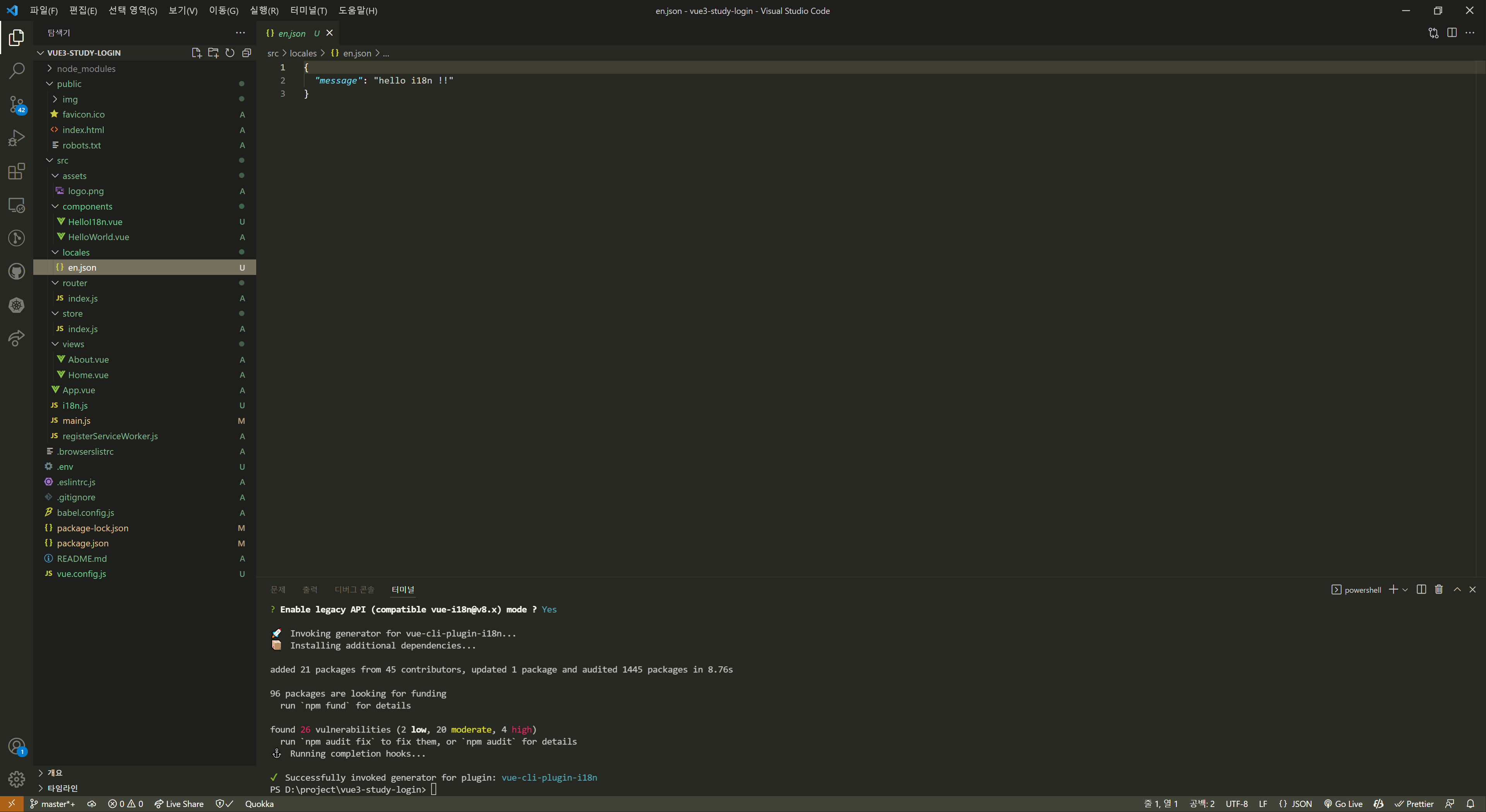 npm install 할거 다 한 다음 vue add i18n 입력할거다.