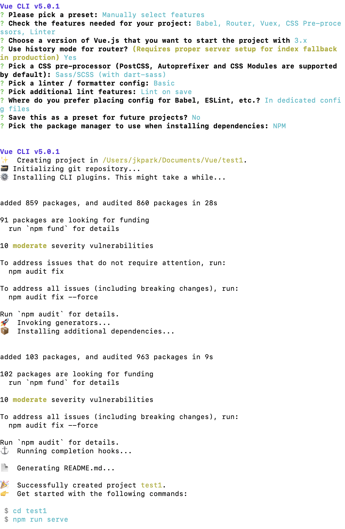 vue create test1