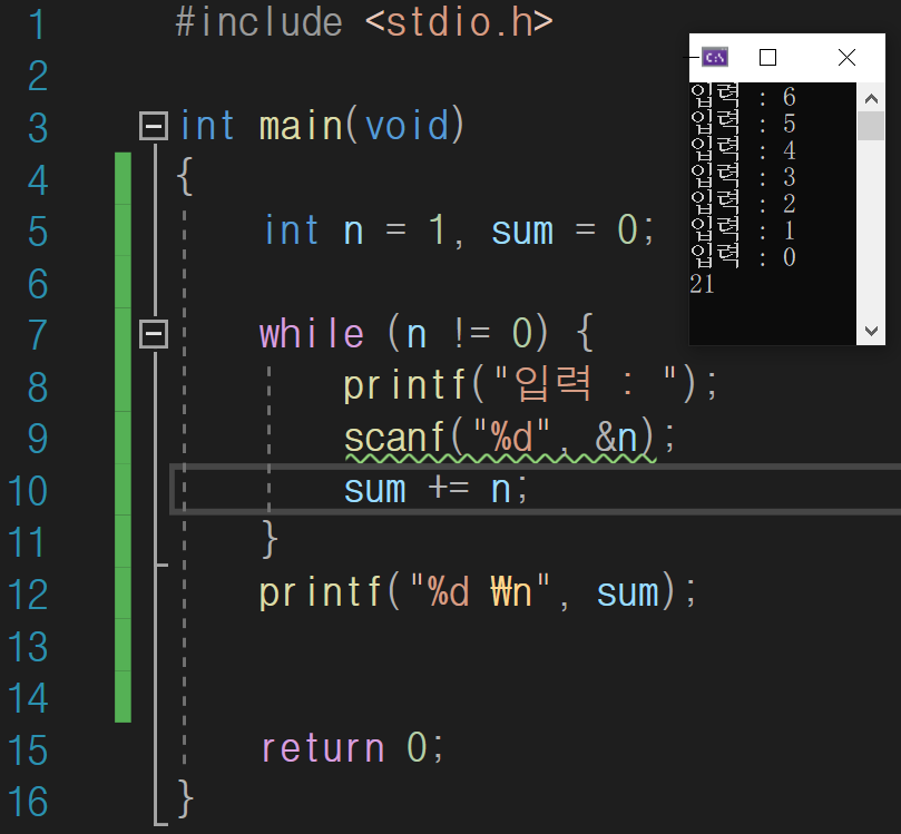 int n = 1, sum = 0;