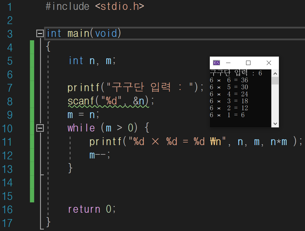printf("구구단 입력 : ");