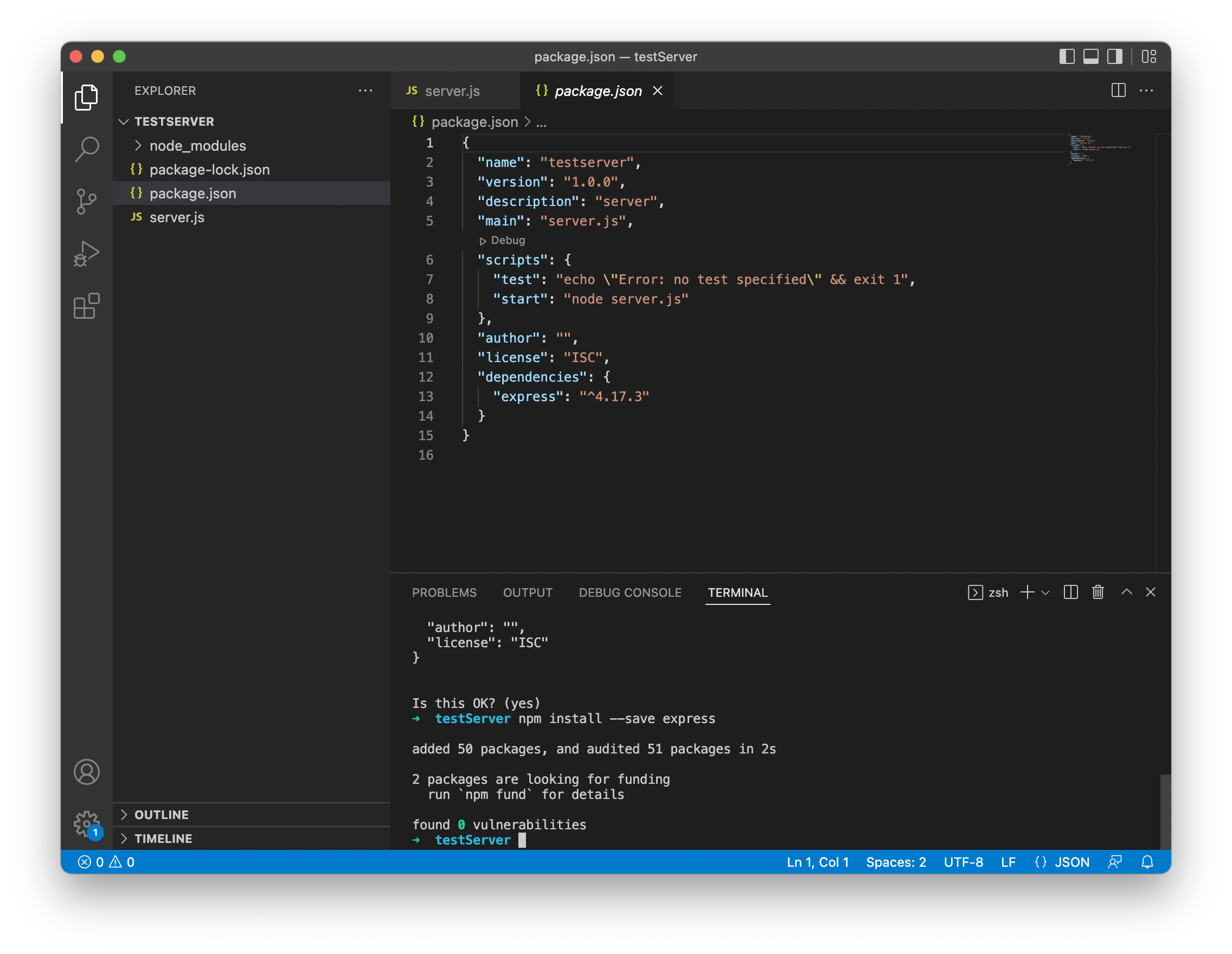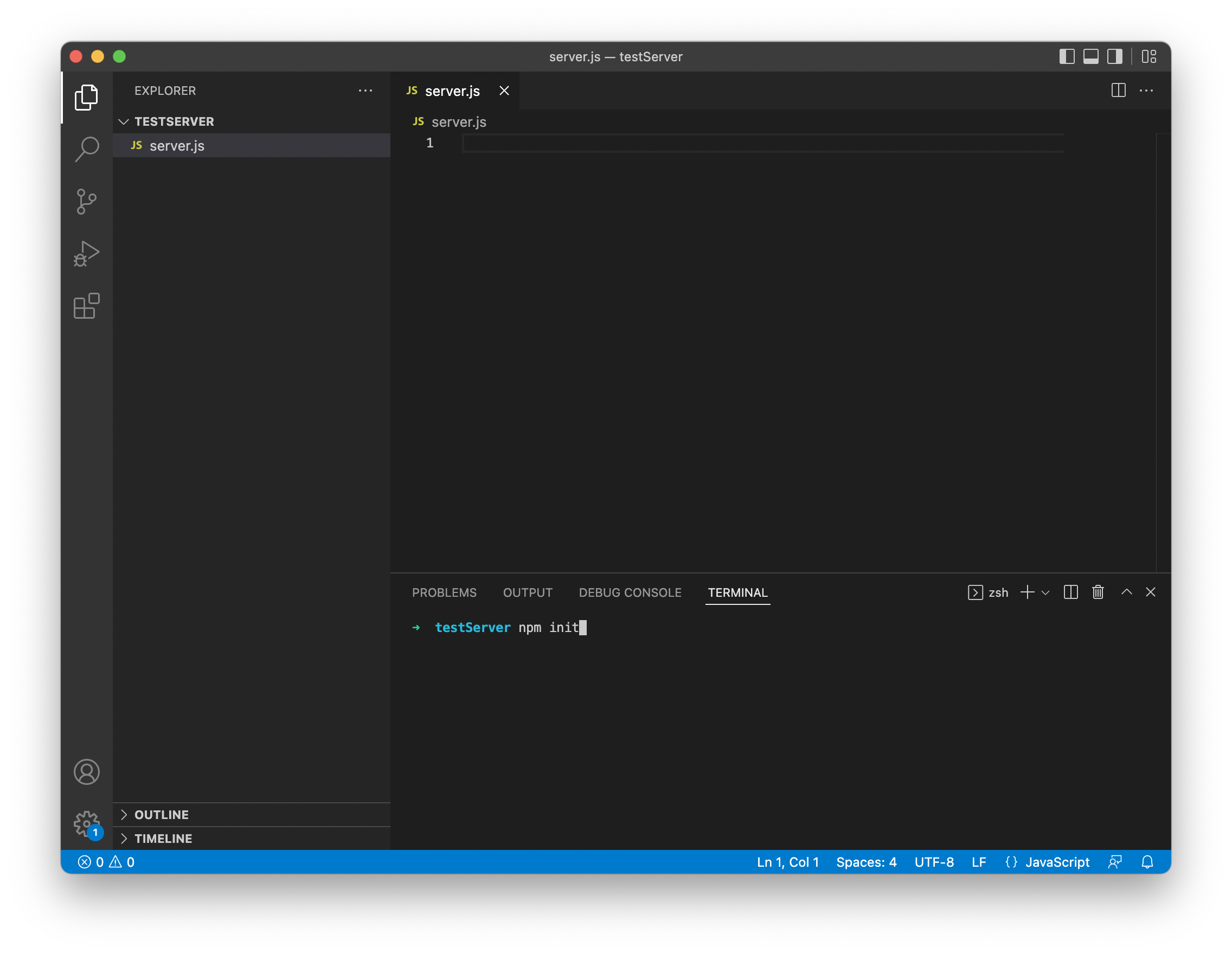 vscode에서 해당 폴더를 열고 터미널에 npm init을 한다.
