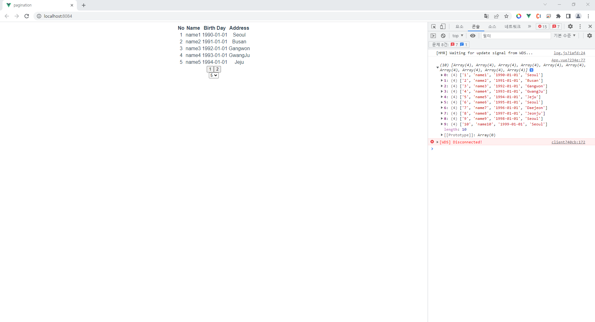 먼저, 1차원 배열을 Json으로 만들고 v-for를 활용하여 table에 보여지도록 만들어야 했다.