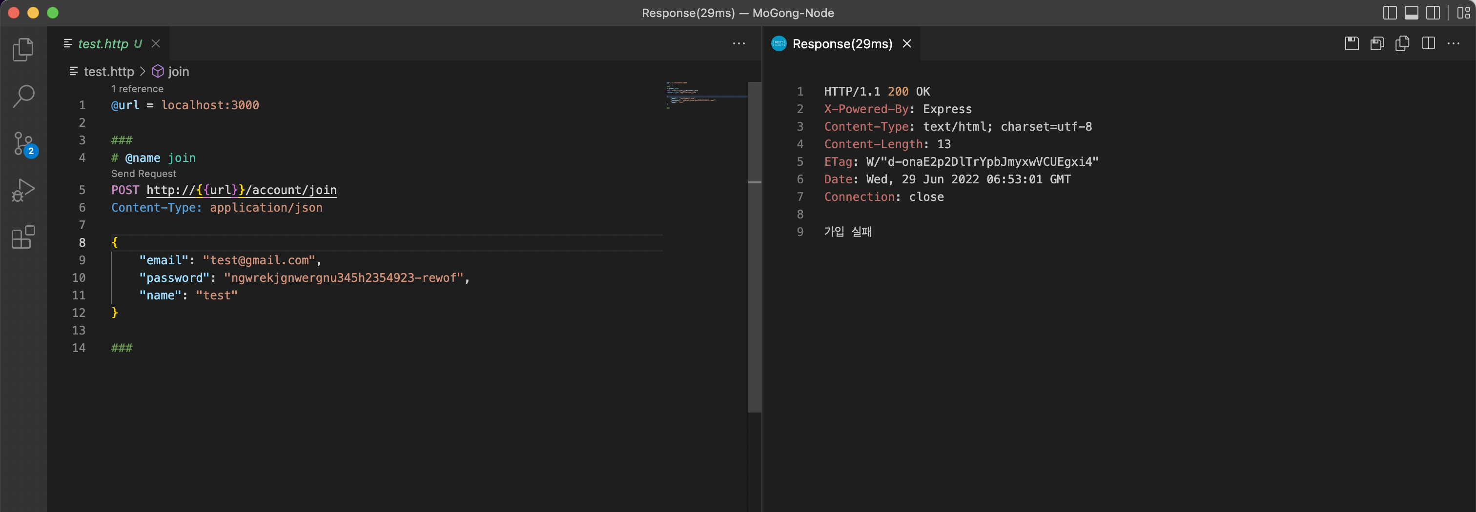 작성된 POST 위에 Send Request가 생김. 이걸 클릭해주면 됨.