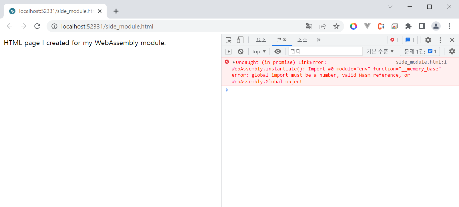 Uncaught (in promise) LinkError: WebAssembly.instantiate(): Import #0 module="env" function="__memory_base" error: global import must be a number, valid Wasm reference, or WebAssembly.Global object
