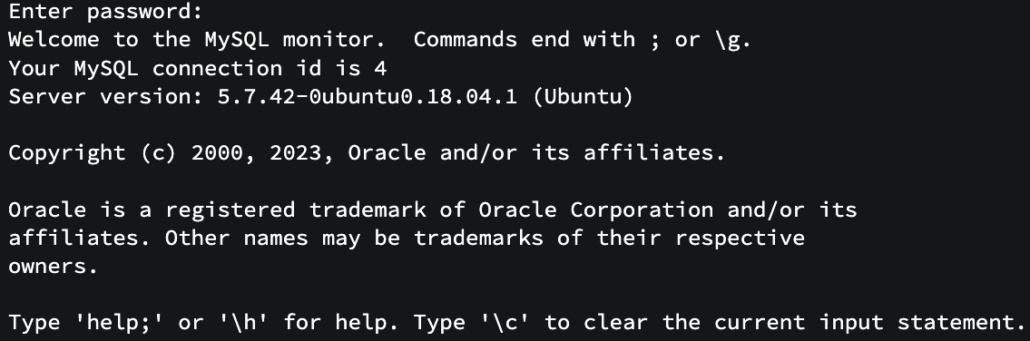 mysql -u root -p