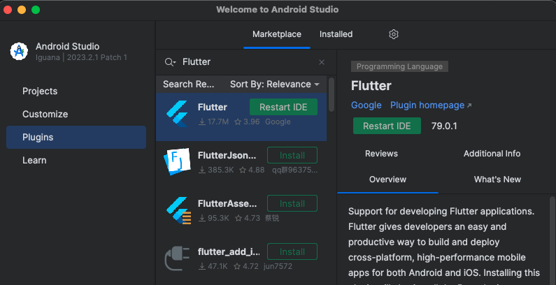 flutter 공식 사이트에서 sdk를 받아야 한다.(여기)