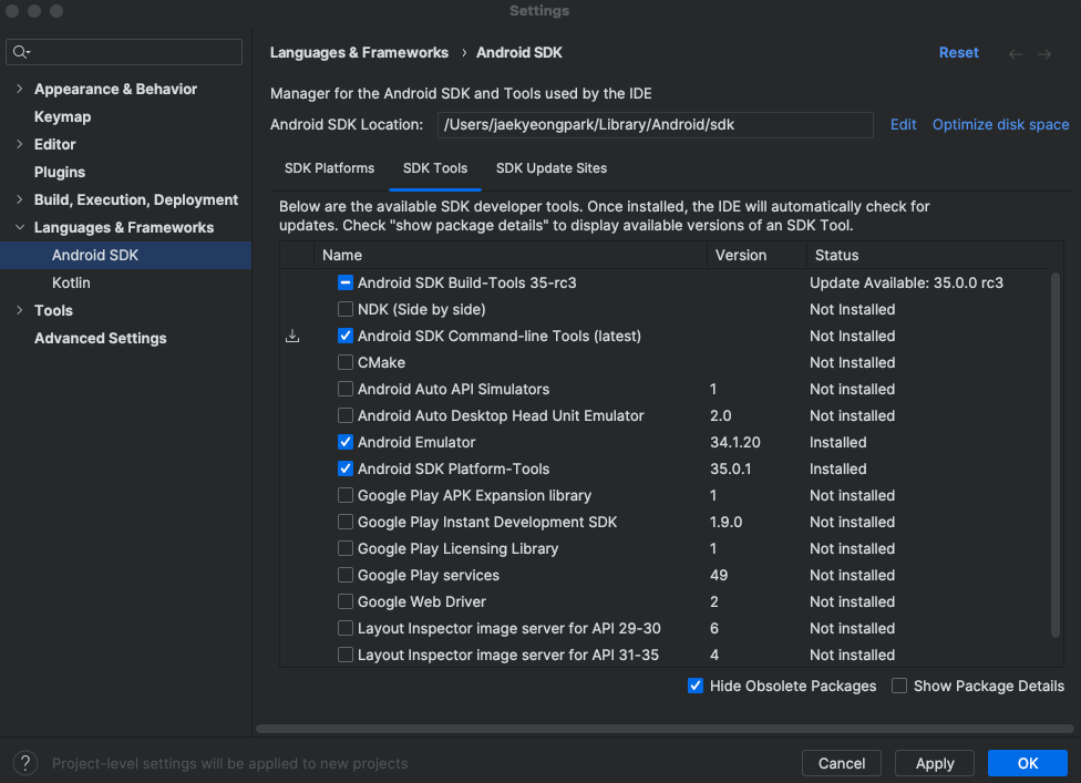 [Android SDK Command-line Tools (latest)] click -> [OK] click
