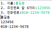 3. Scanner를 이용해서 이름, 주민번호 앞 6자리, 전화번호를 키보드에서 입력받고 출력하는 코드를 작성해보세요.