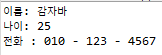 System.out.printf("\n전화 : %1$s - %2$s - %3$s", tel1,tel2,tel3);