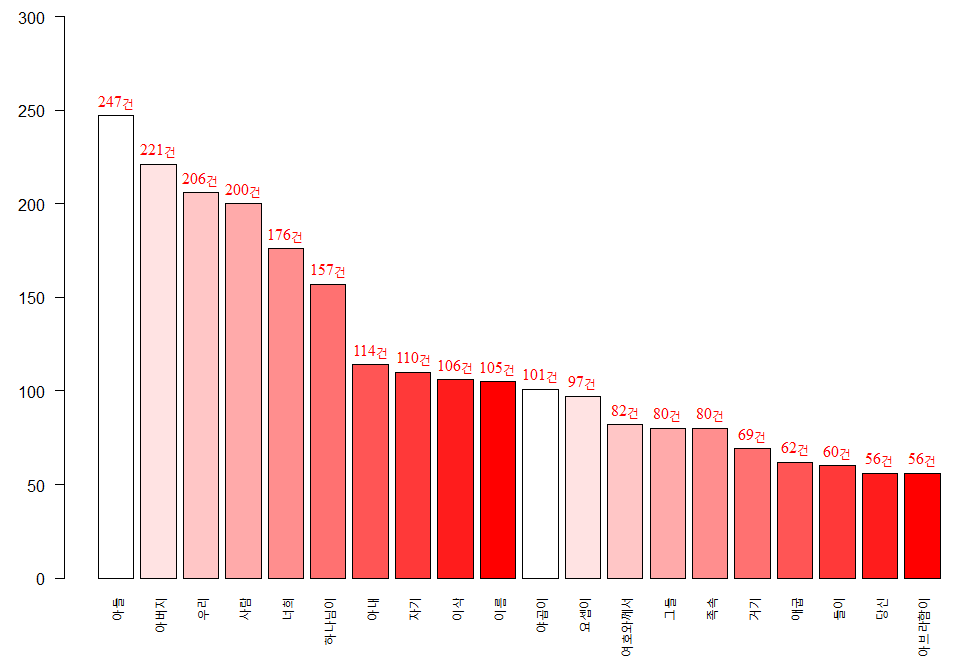 text(tt,kk,label=paste0(kk,"건"),pos=3,col='red',cex=1,font=6)