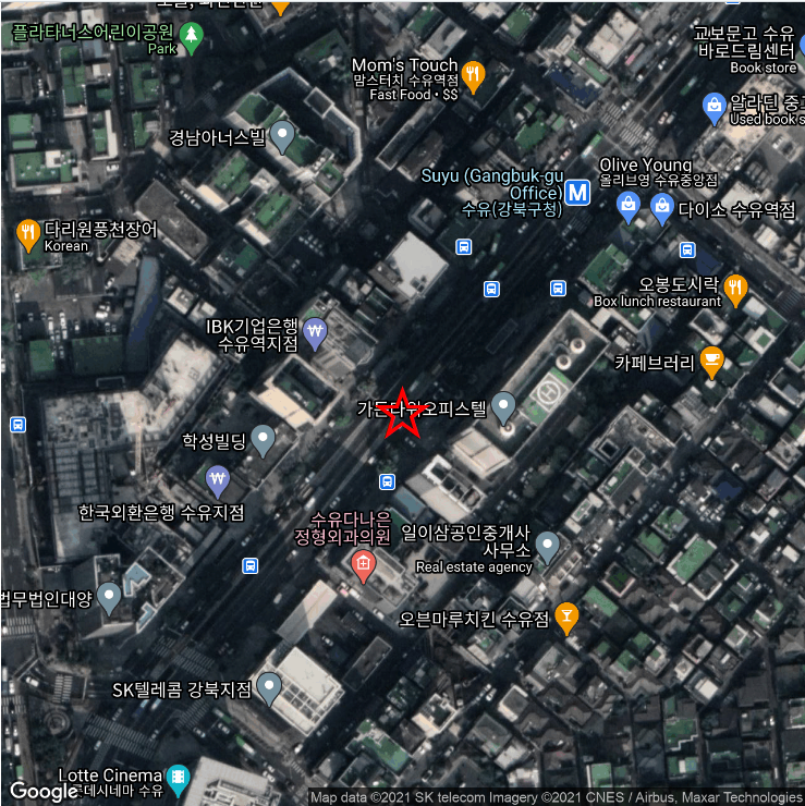 ex) 원하는 위치의 위경도 정보를 얻는 방법과 그 중심지점에 표시