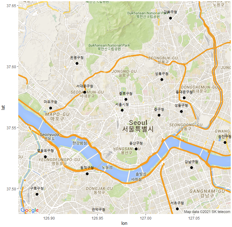 ex) 서울의 구청 위치 현황 지도에 표시하기