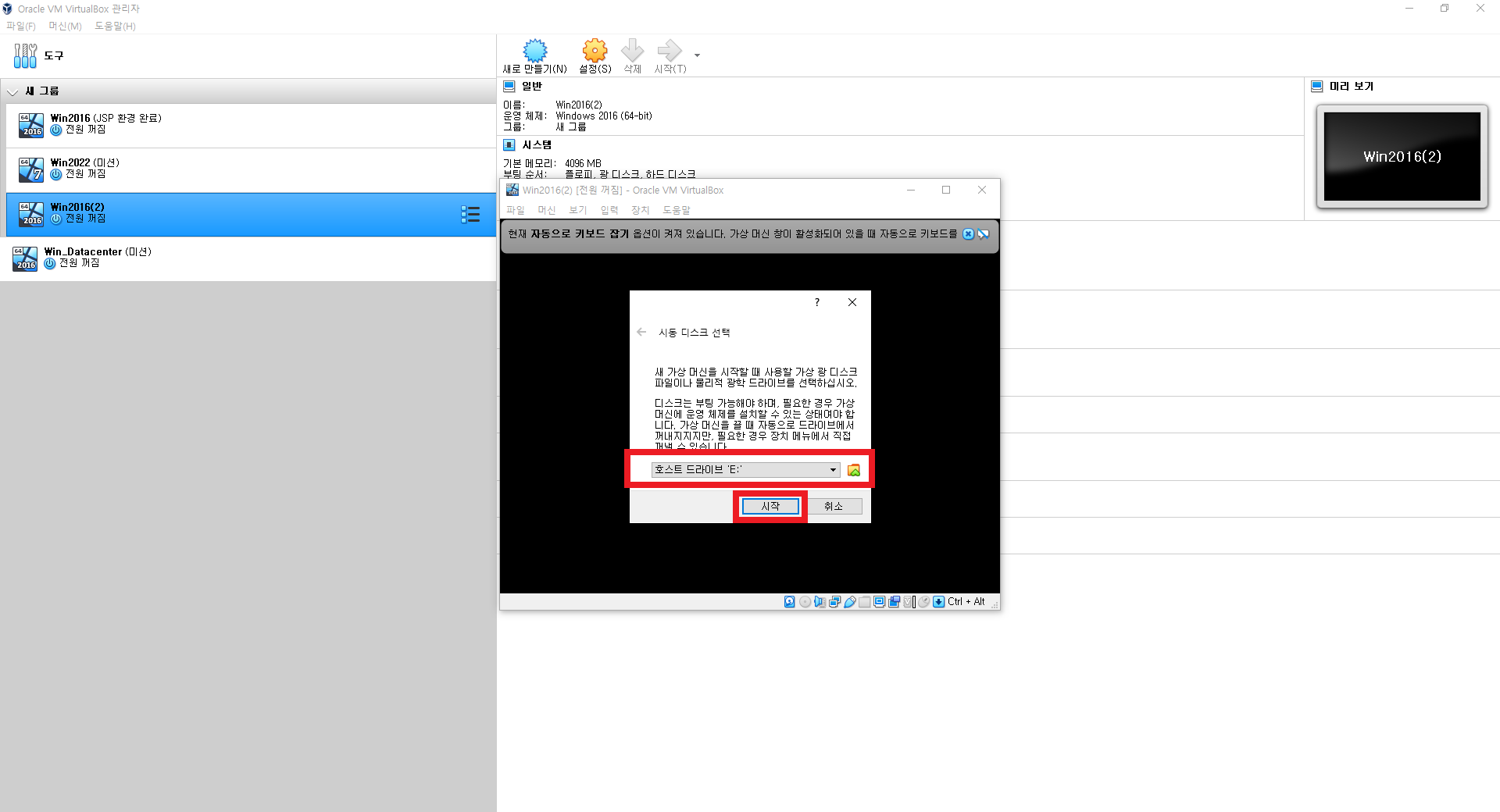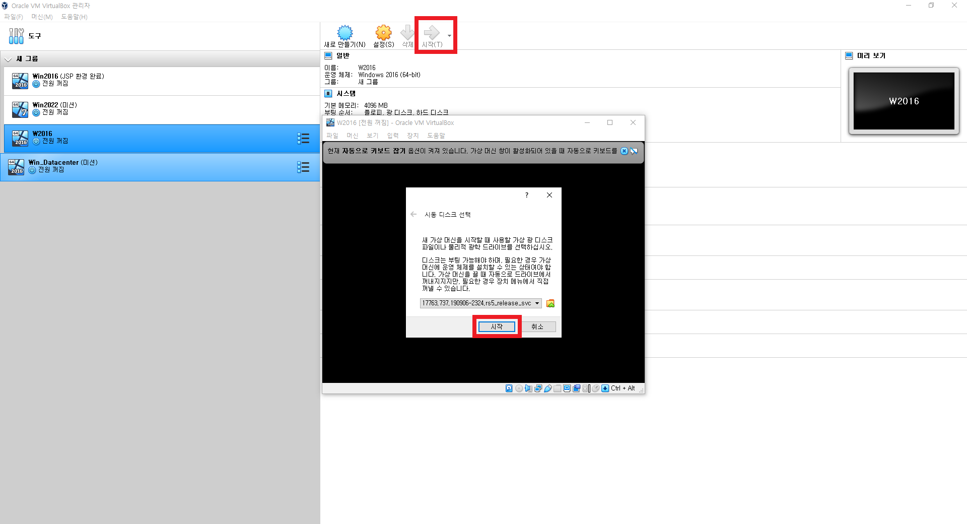 9. 상단 시작 클릭 → 창이 뜨면 윈도우 설치하기!