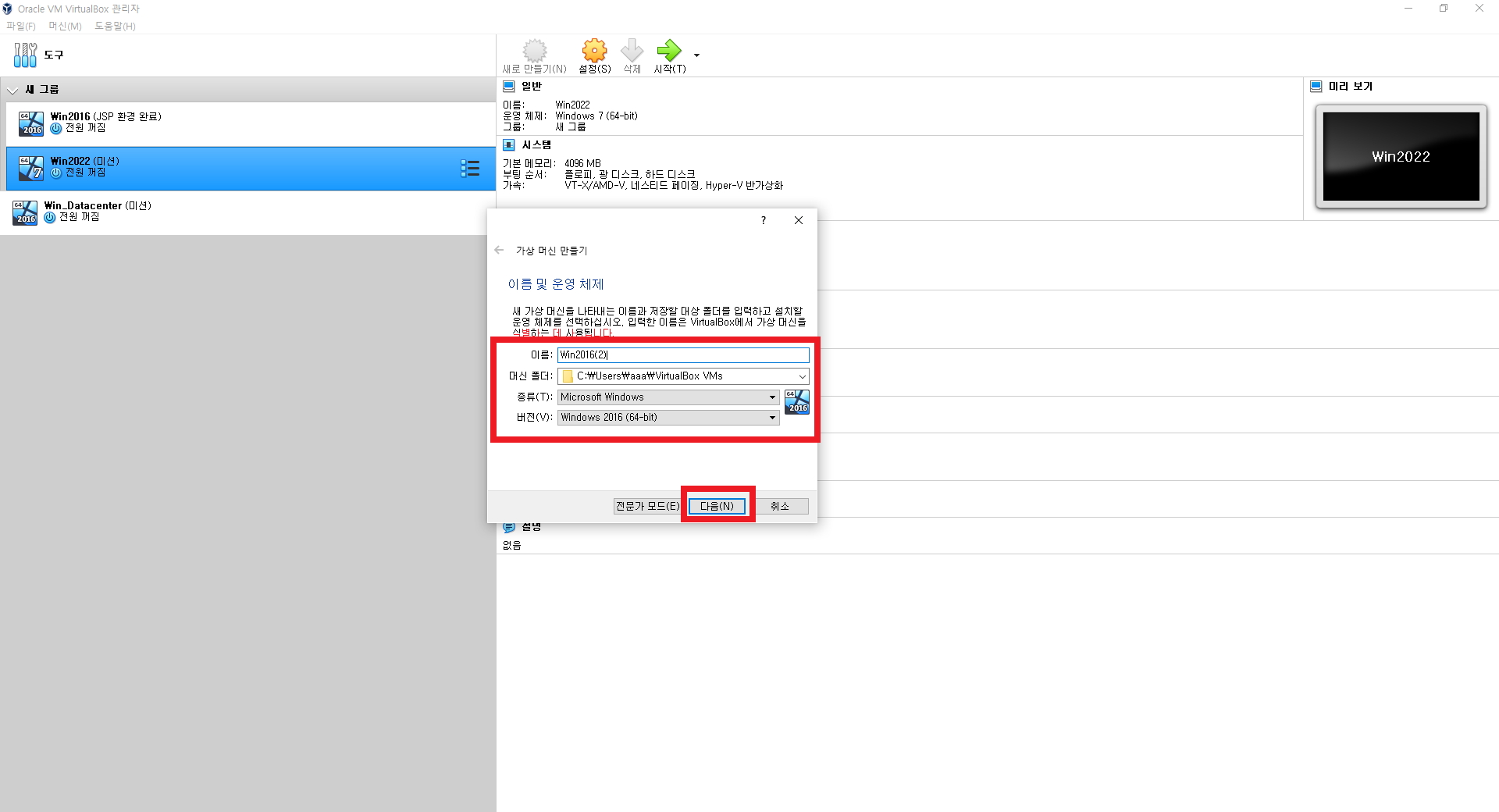 2. 이름, 폴더 등을 지정해준 후 다음 클릭