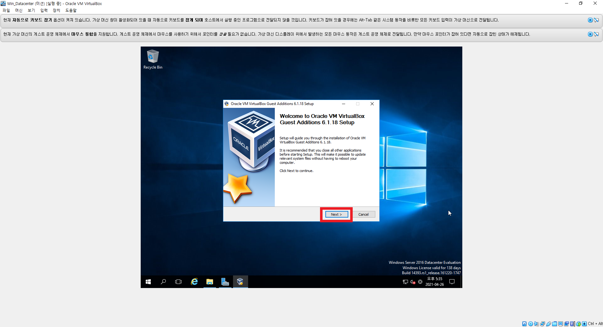 | [VirtualBox] 새로 만들기 설정 (0) | 2021.04.26 |