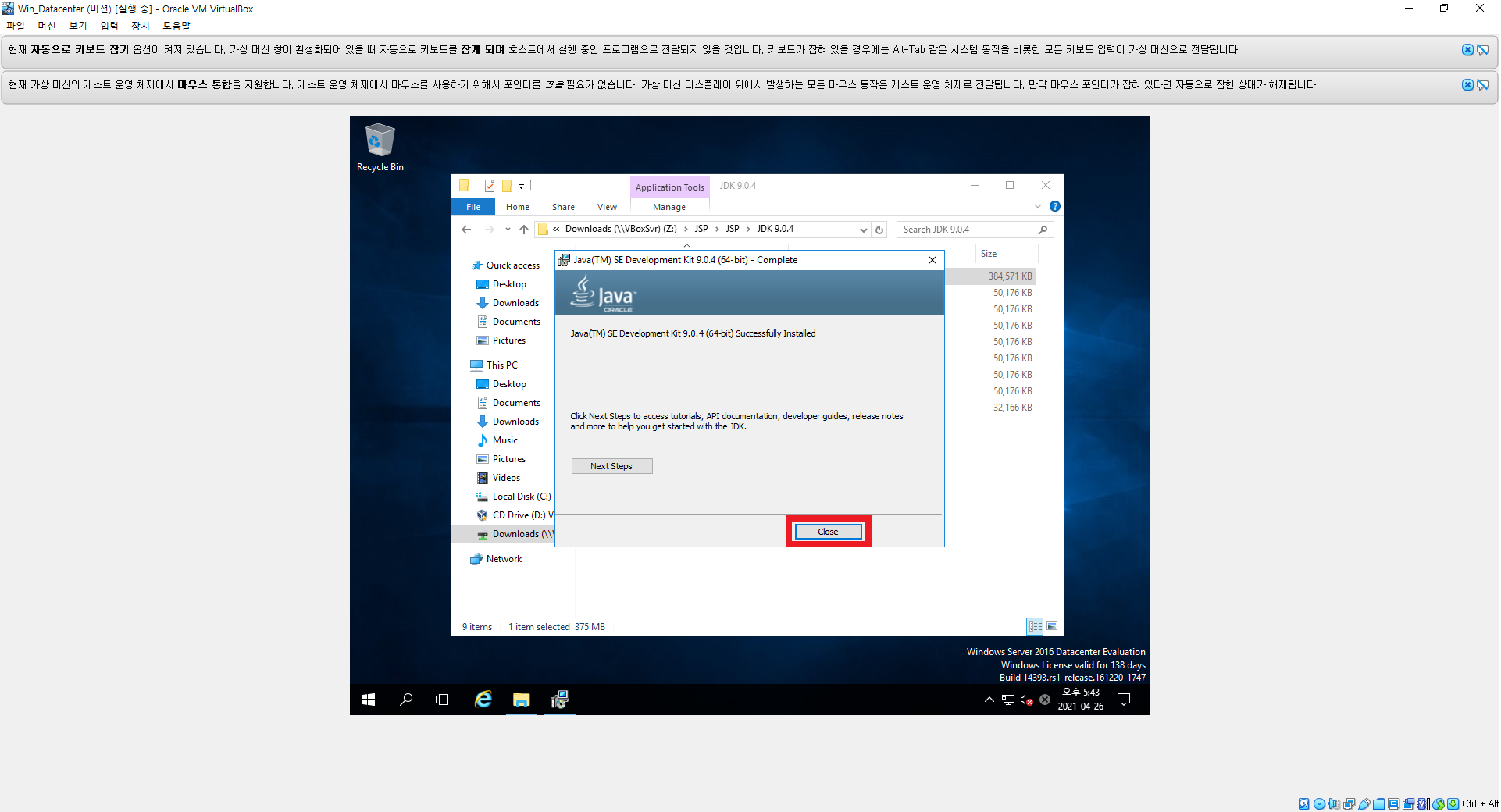 1. 공유 폴더에 있는 "jdk-9.0.4_windows-x64_bin" 파일 실행