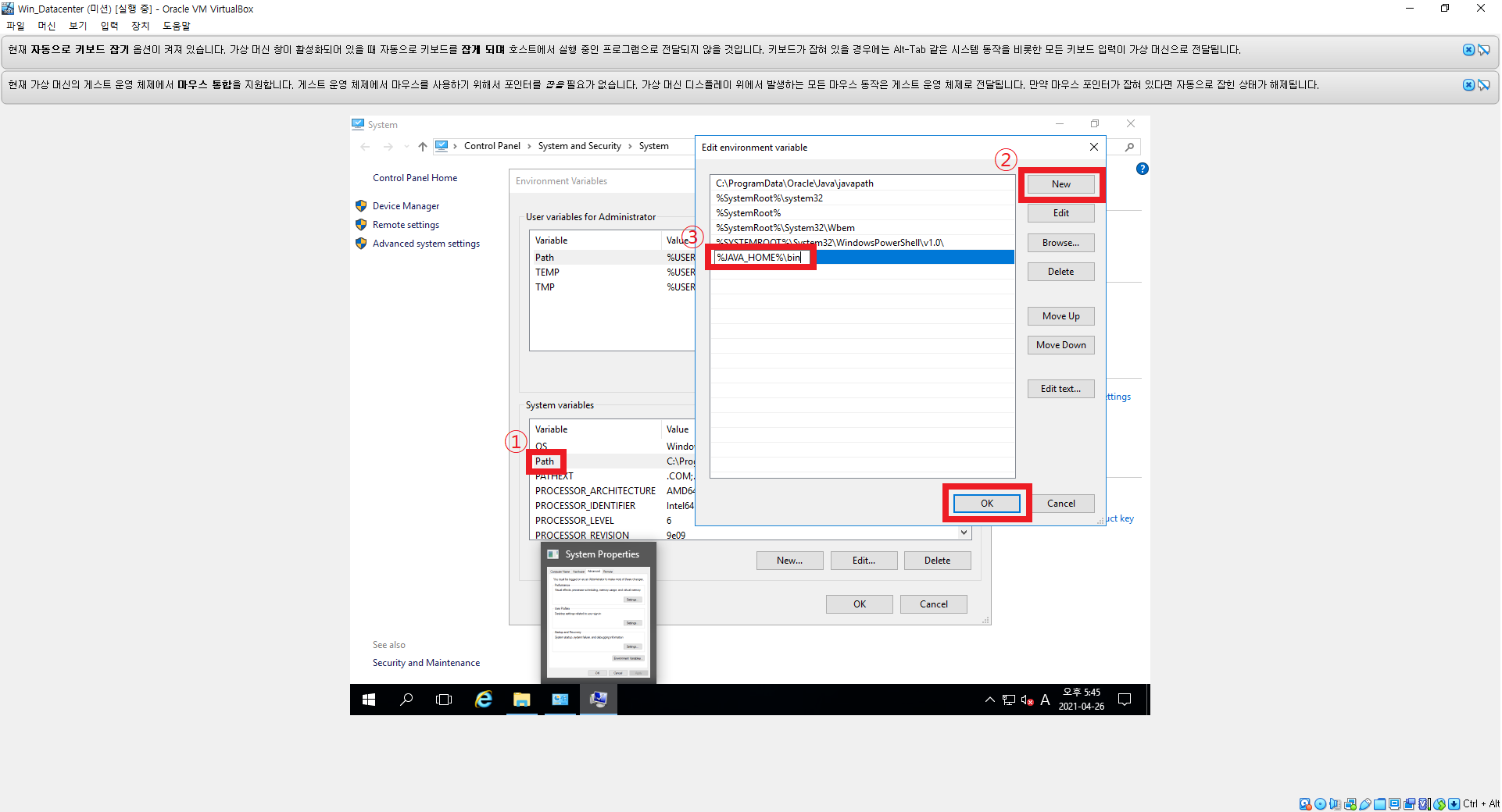 10. Path → New → %JAVA_HOME%\bin 입력 후 ok 클릭