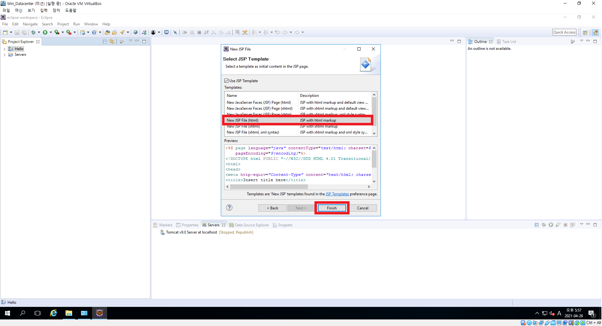 13. New JSP File(html) 선택 → Finish 버튼 클릭
