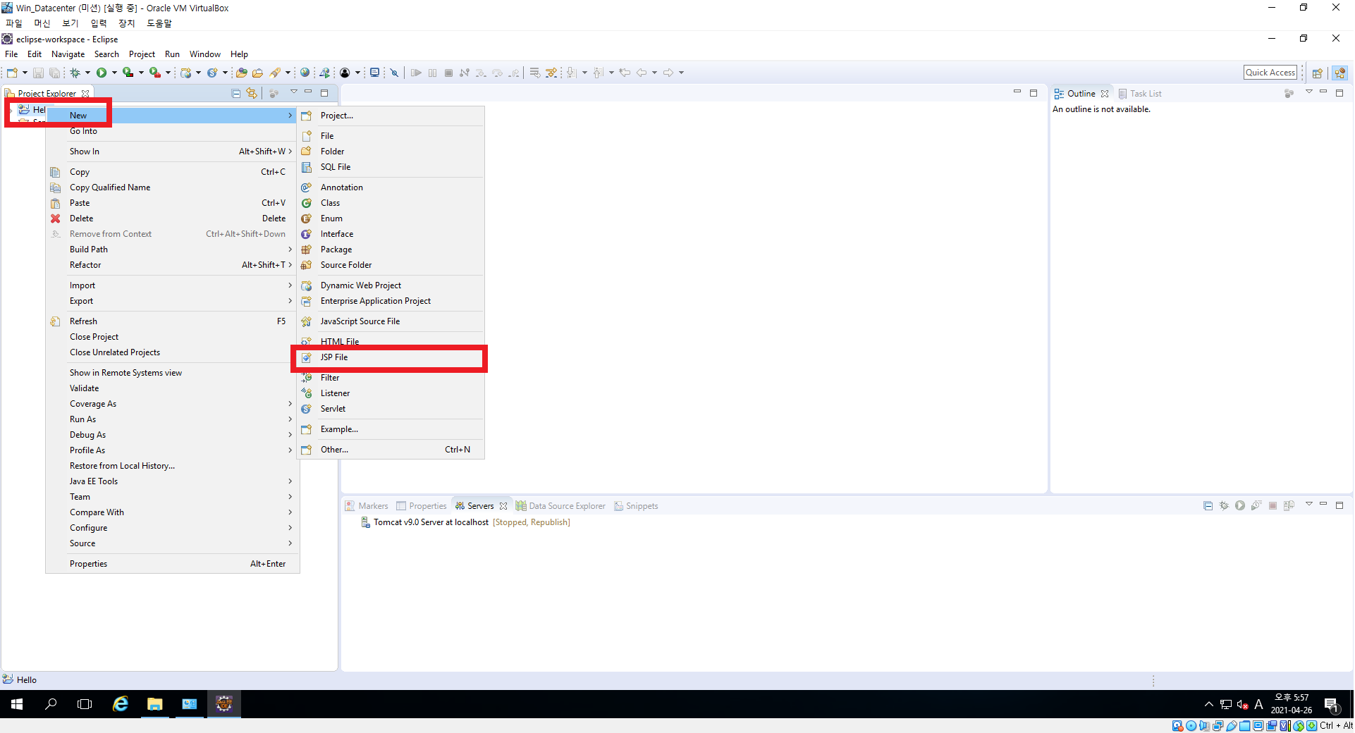 11. 프로젝트 우클릭 → New → JSP File 클릭