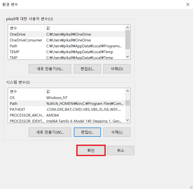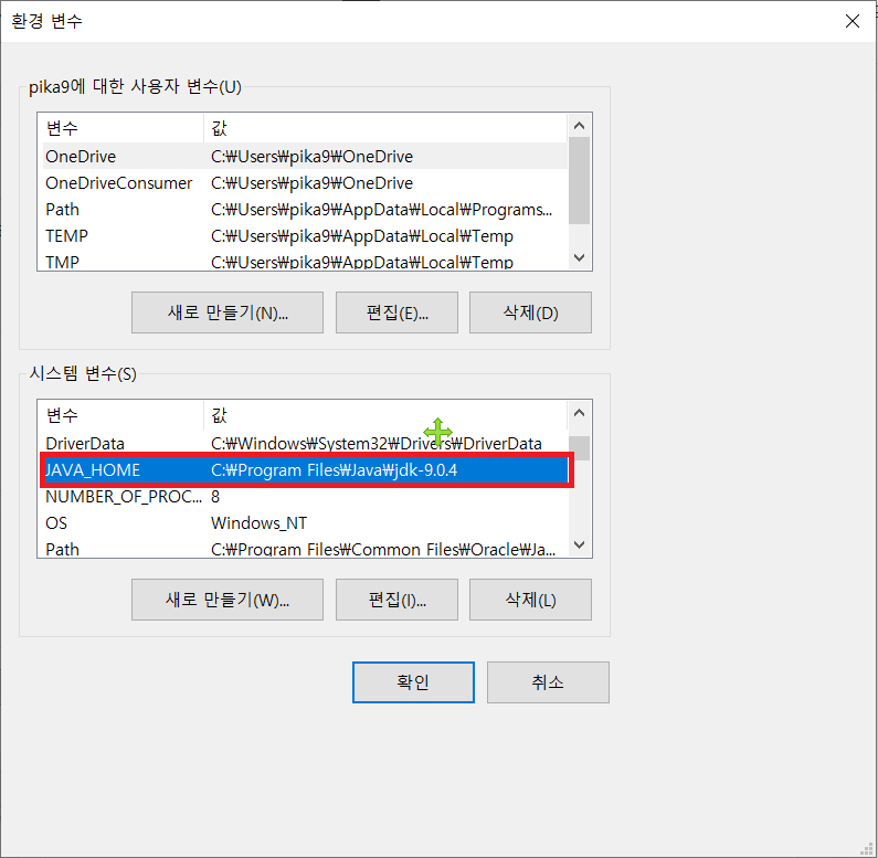 나는 이미 JAVA_HOME이 있기 때문에 편집 클릭함