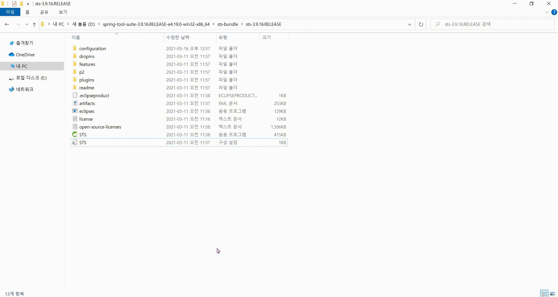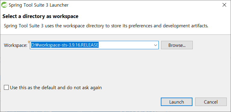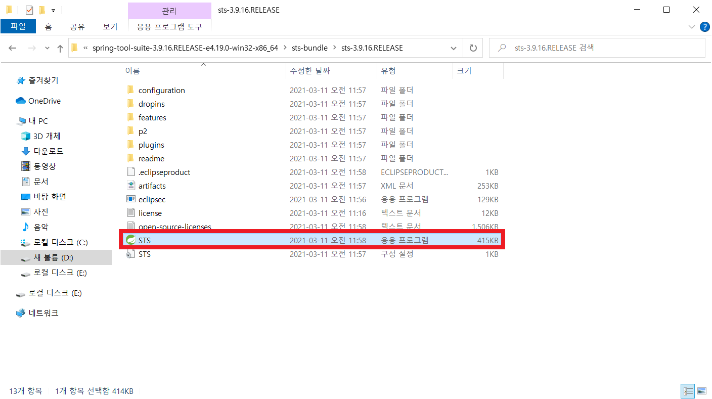3)spring-tool-suite-3.9.16.RELEASE-e4.19.0-win32-x86_64\sts-bundle\sts-3.9.16.RELEASE\STS 실행