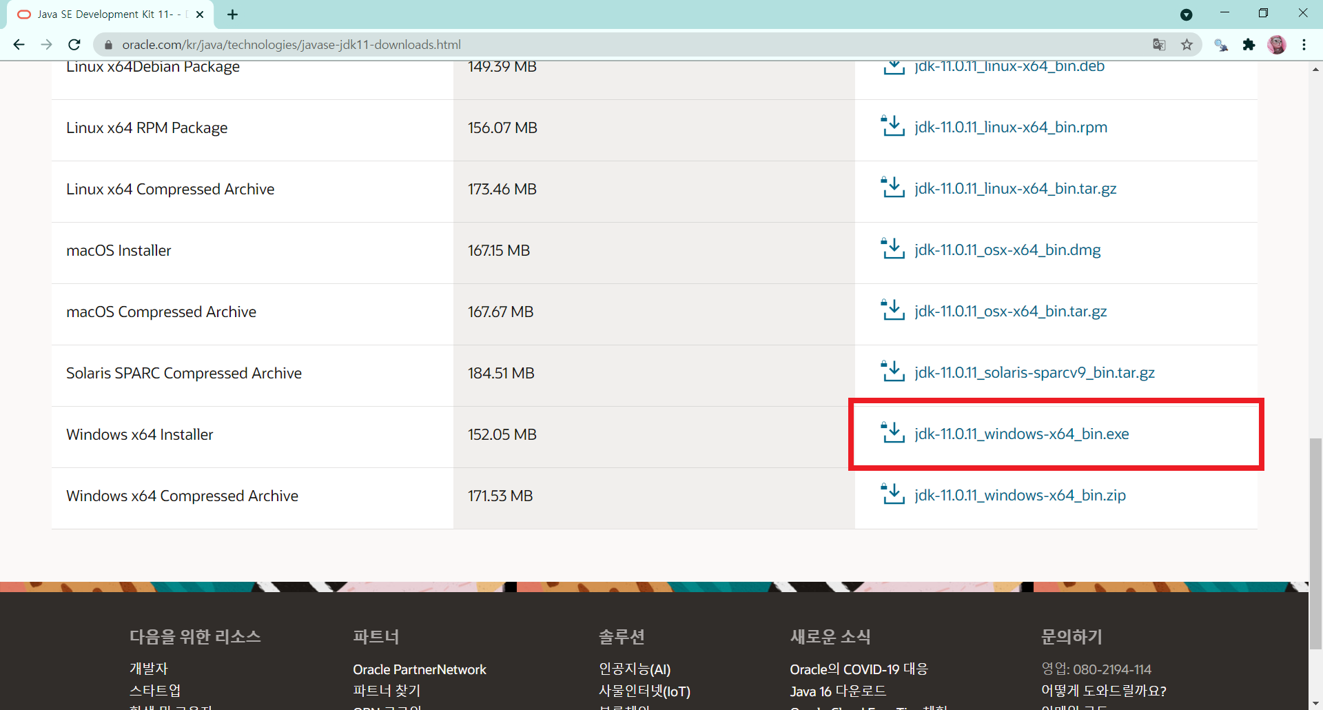 2) 로그인 창이 뜨면 오라클 계정으로 로그인하기 → 하단에 다운로드가 시작됨