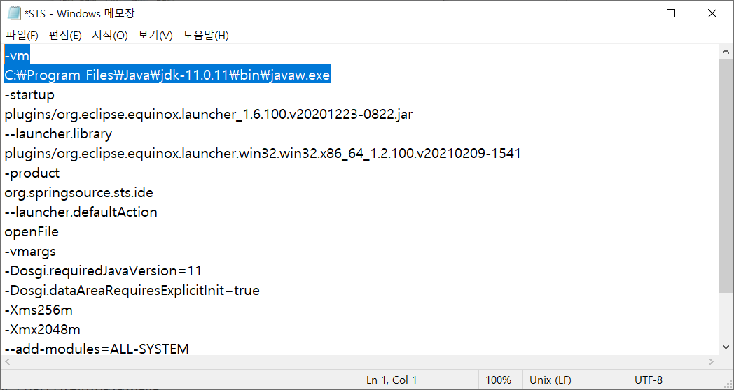 있는 STS.ini 파일을 메모장으로 열기