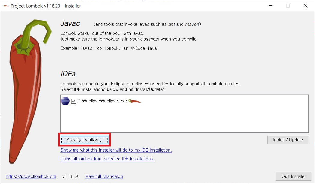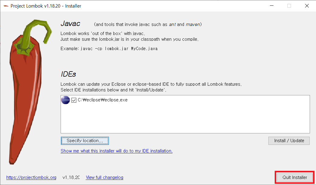 ① lombok.jar 실행하기
