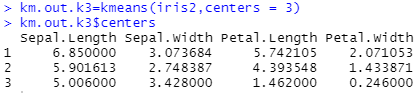 km.out.k3=kmeans(iris2,centers = 3)