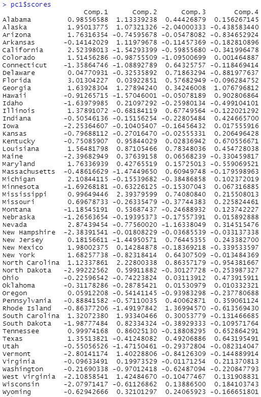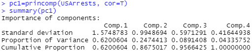 pc1=princomp(USArrests, cor=T)