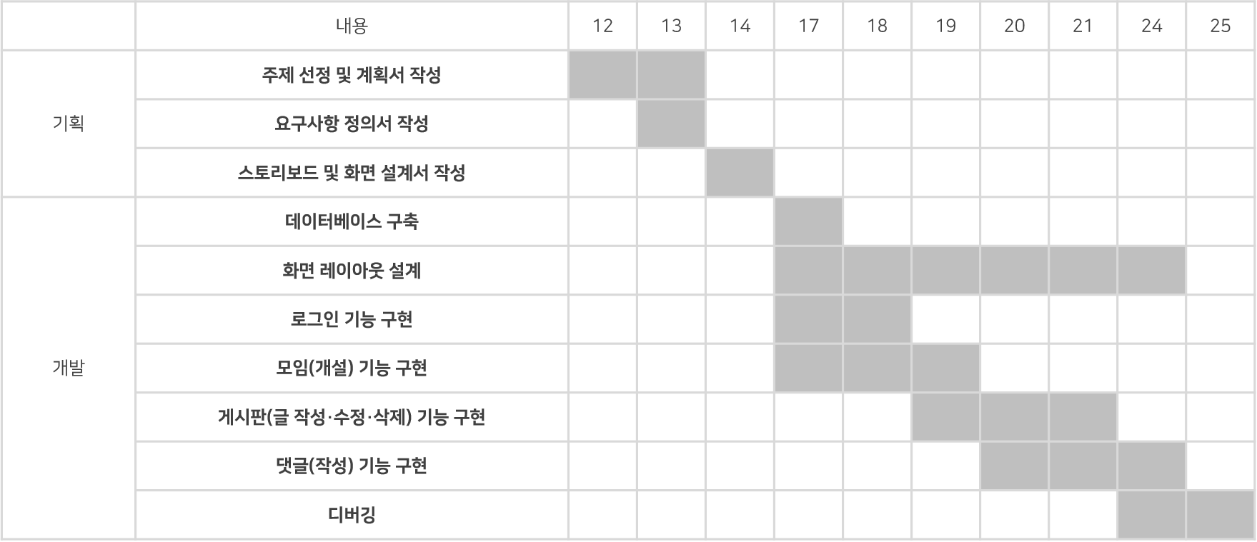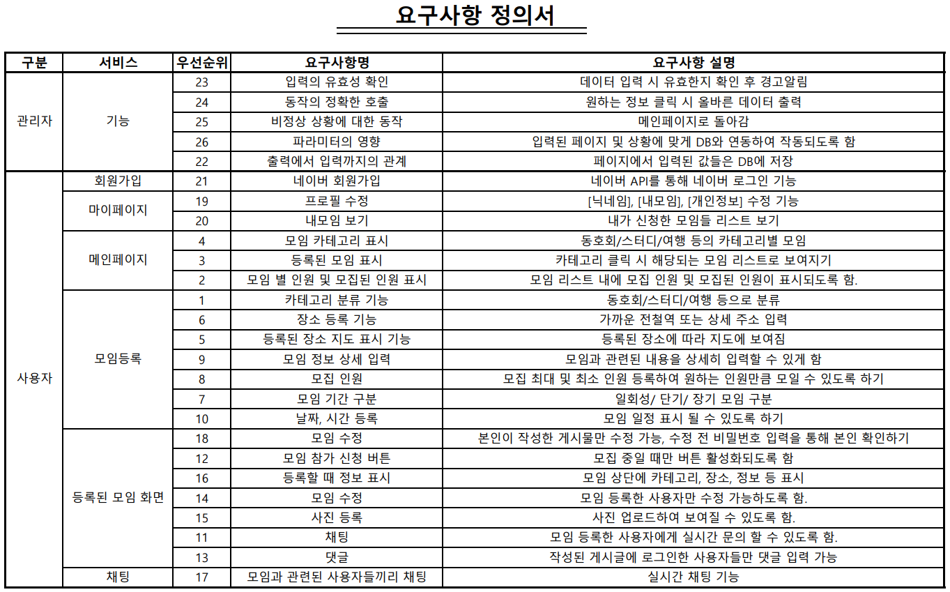 직접 모임을 개설할 수 있으며 게시판을 통해 소통이 가능한 동적 웹사이트를 구축하고자 함.