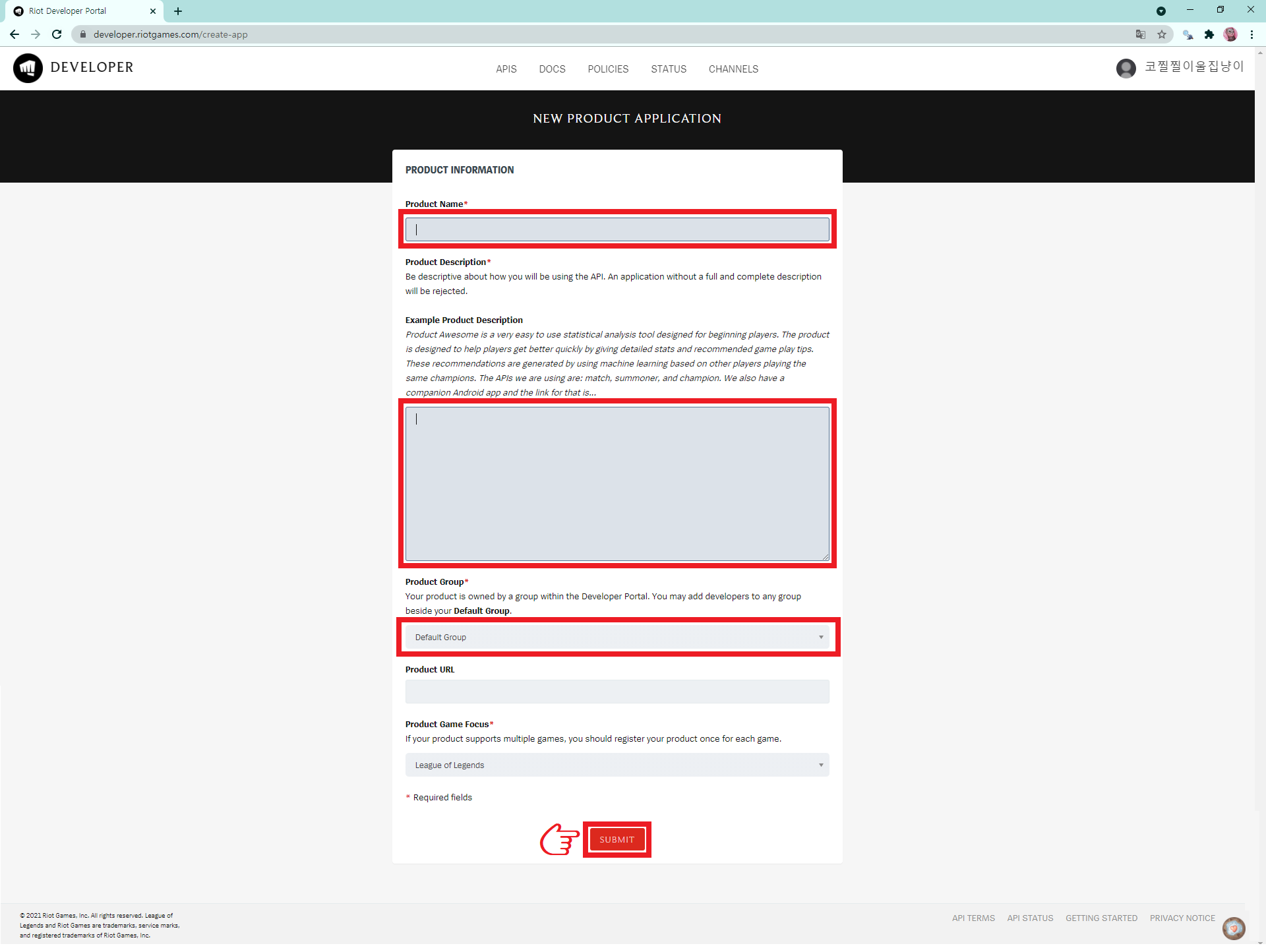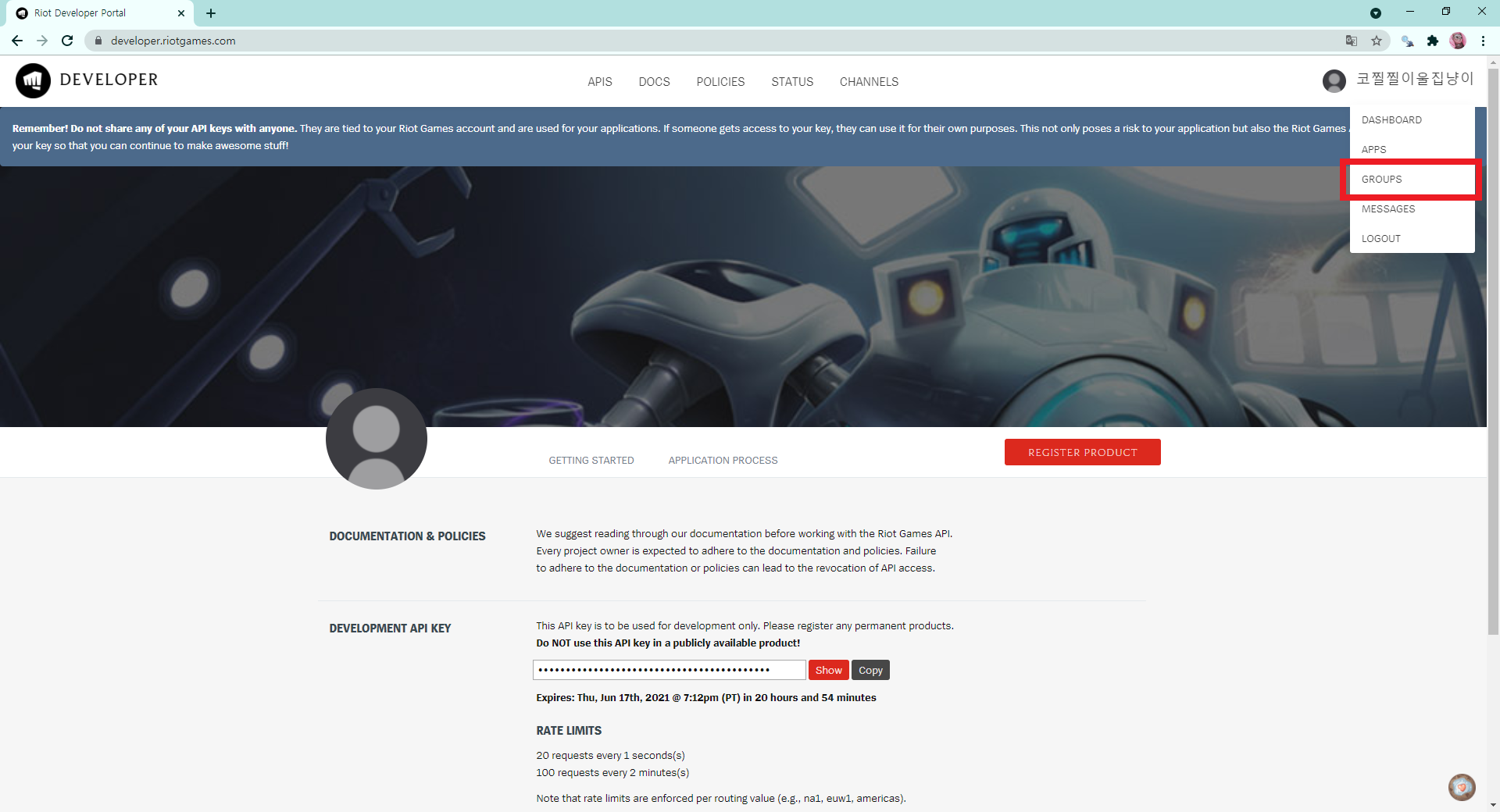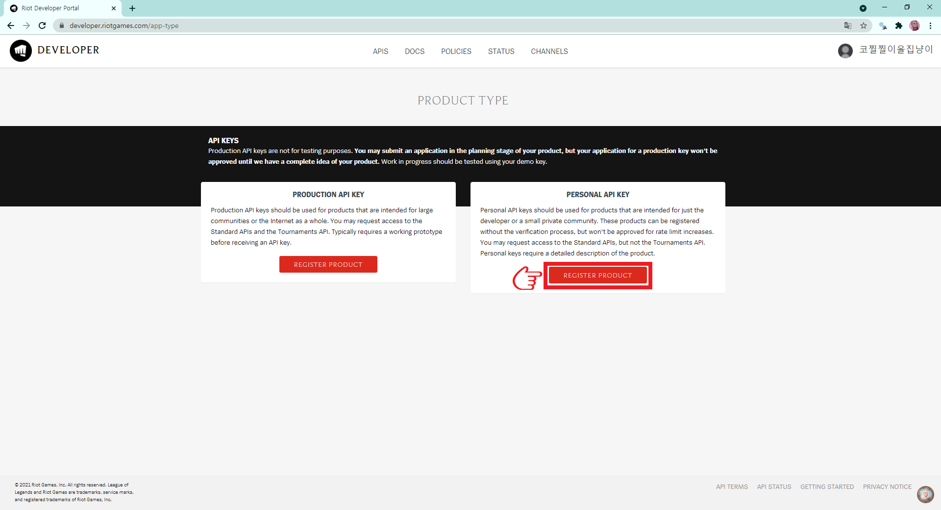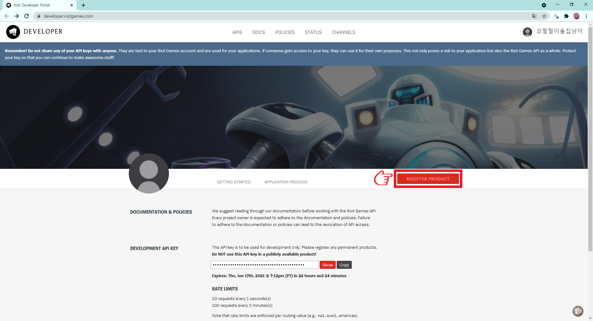 이것저것 알아보던 중에 라이엇 API가 필요하다는 것을 알게 되었다.